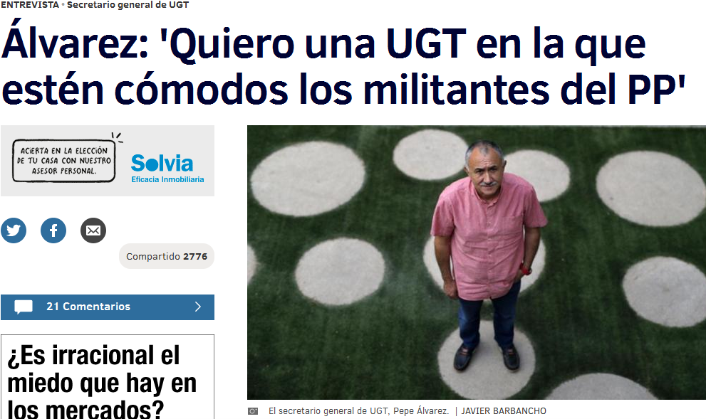 (El titular de la entrevista al secretario general de UGT)
